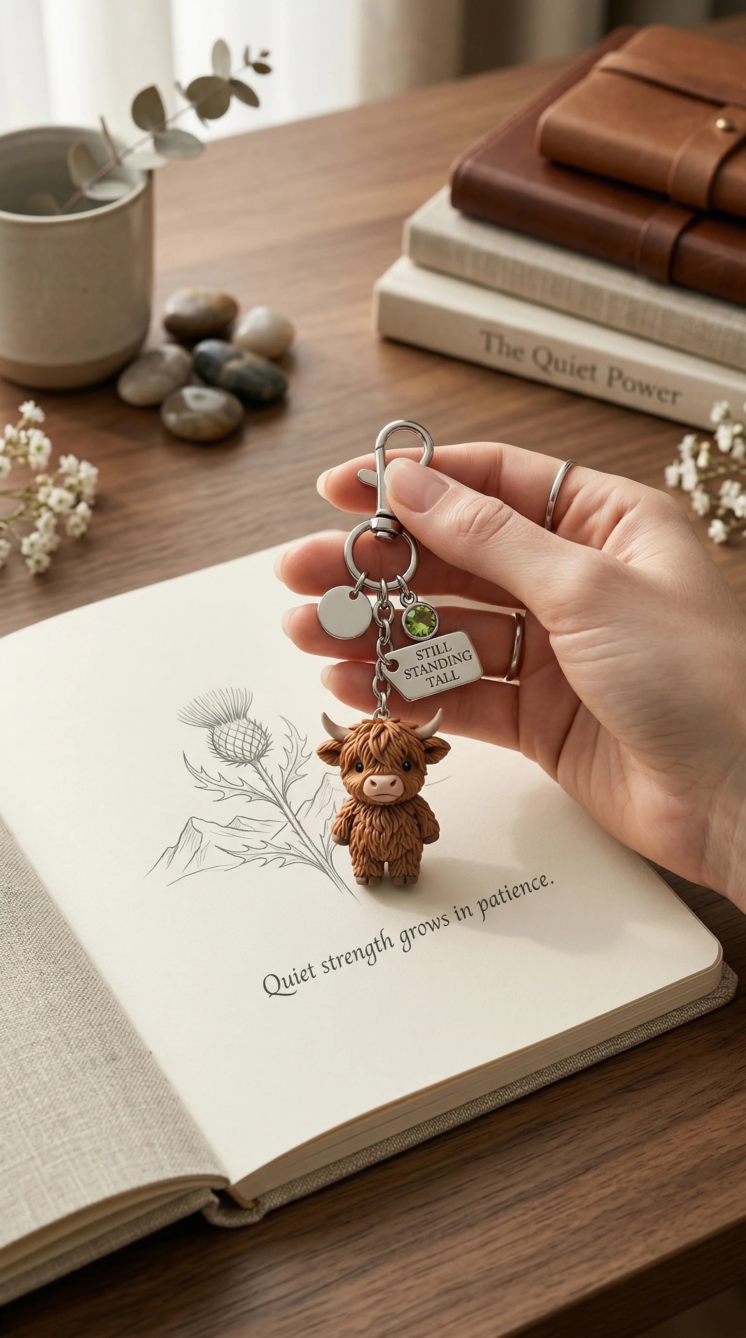 - Included: 1 x Highland Cow Keychain + 1 x Full-Color Sentiment Card (ready for gifting!)